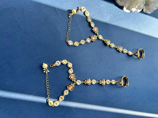 Red & White Jadau Chain Hathphool VNHN211