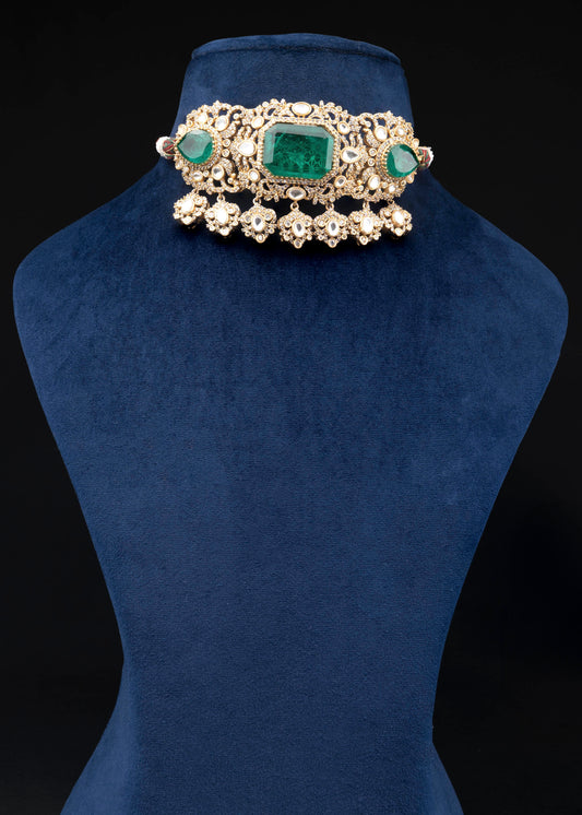 Emerald Green Polki Necklace Set - VNN020