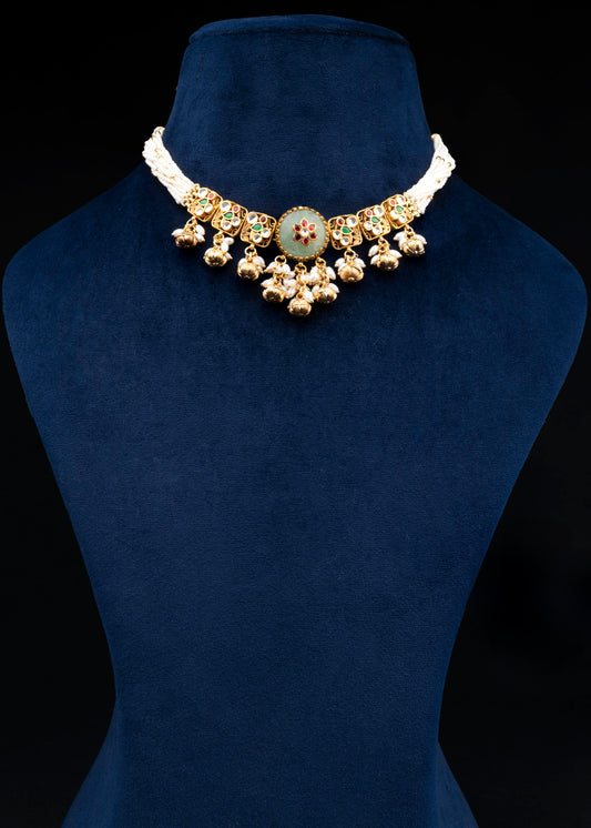 Multi Jadau Green Pearl Choker Set - VNN070