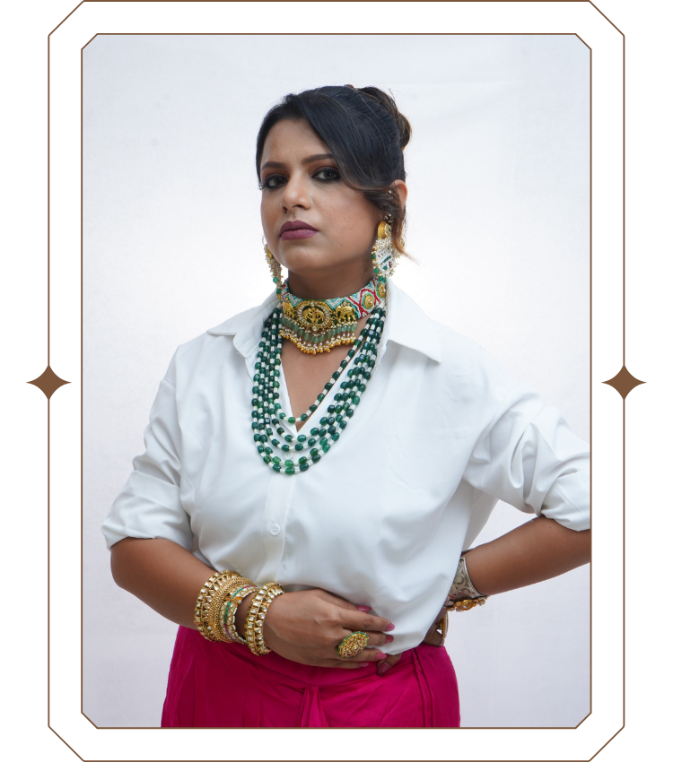 A Finance graduate turned Entrepreneur, Vaidehi started Vani Jewels in 2018 with her passion for jewellery and styling with a handful of products. With a remarkable response and her taste of exclusiveness, the passion turned into a business in 2023.