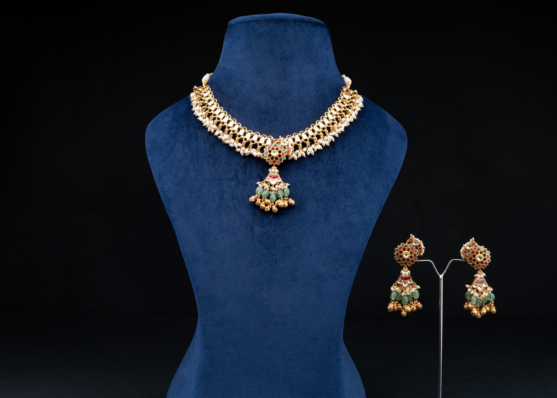 We use all premium materials to handcraft every product exclusively for you. All products are gold or silver plated or rhodium plated, made with high quality pearls, precious and semi precious beads, semi precious stones and high quality jadau kundan and moissanite.