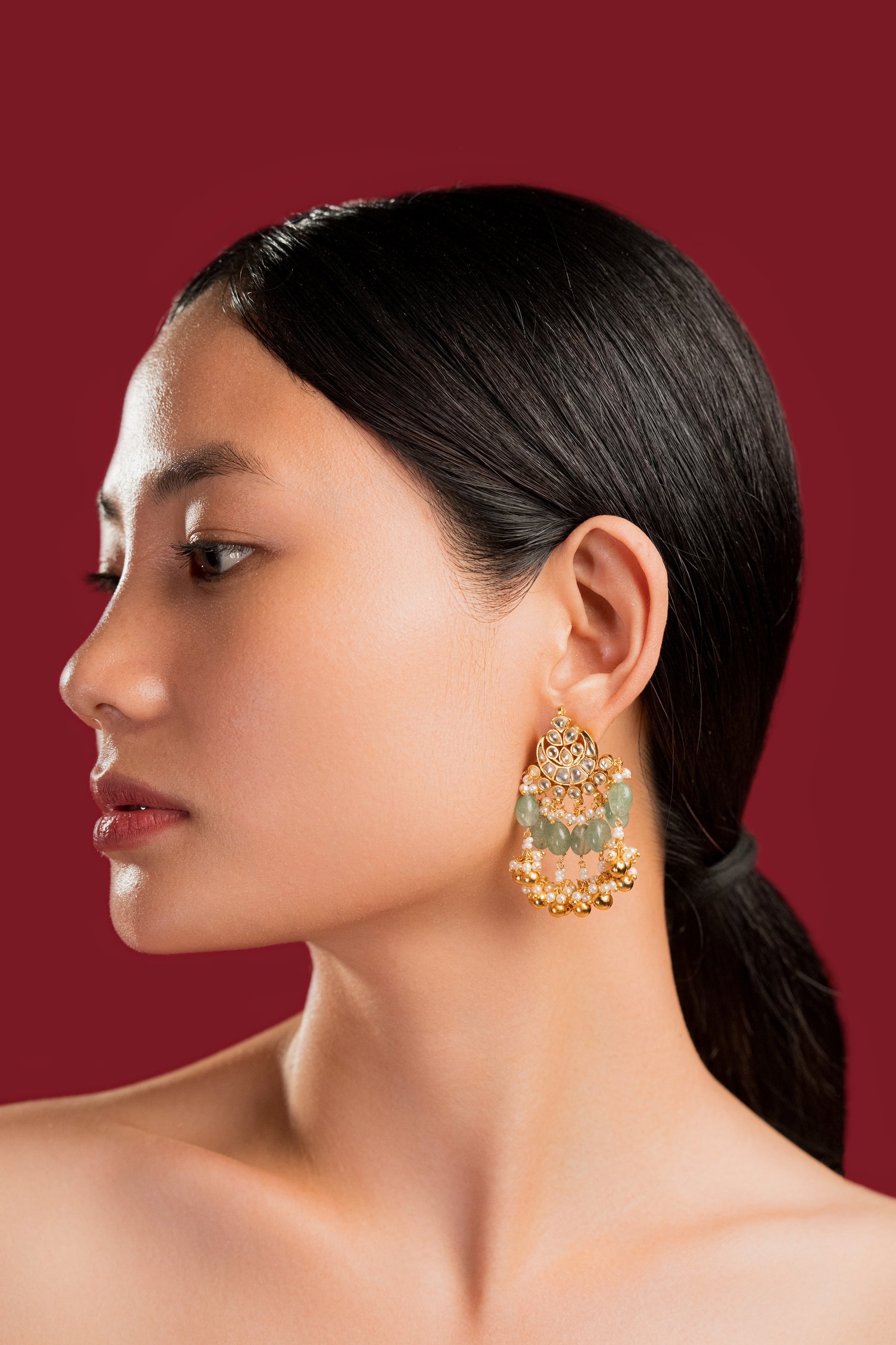 We use all premium materials to handcraft every product exclusively for you. All products are gold or silver plated or rhodium plated, made with high quality pearls, precious and semi precious beads, semi precious stones and high quality jadau kundan and moissanite.