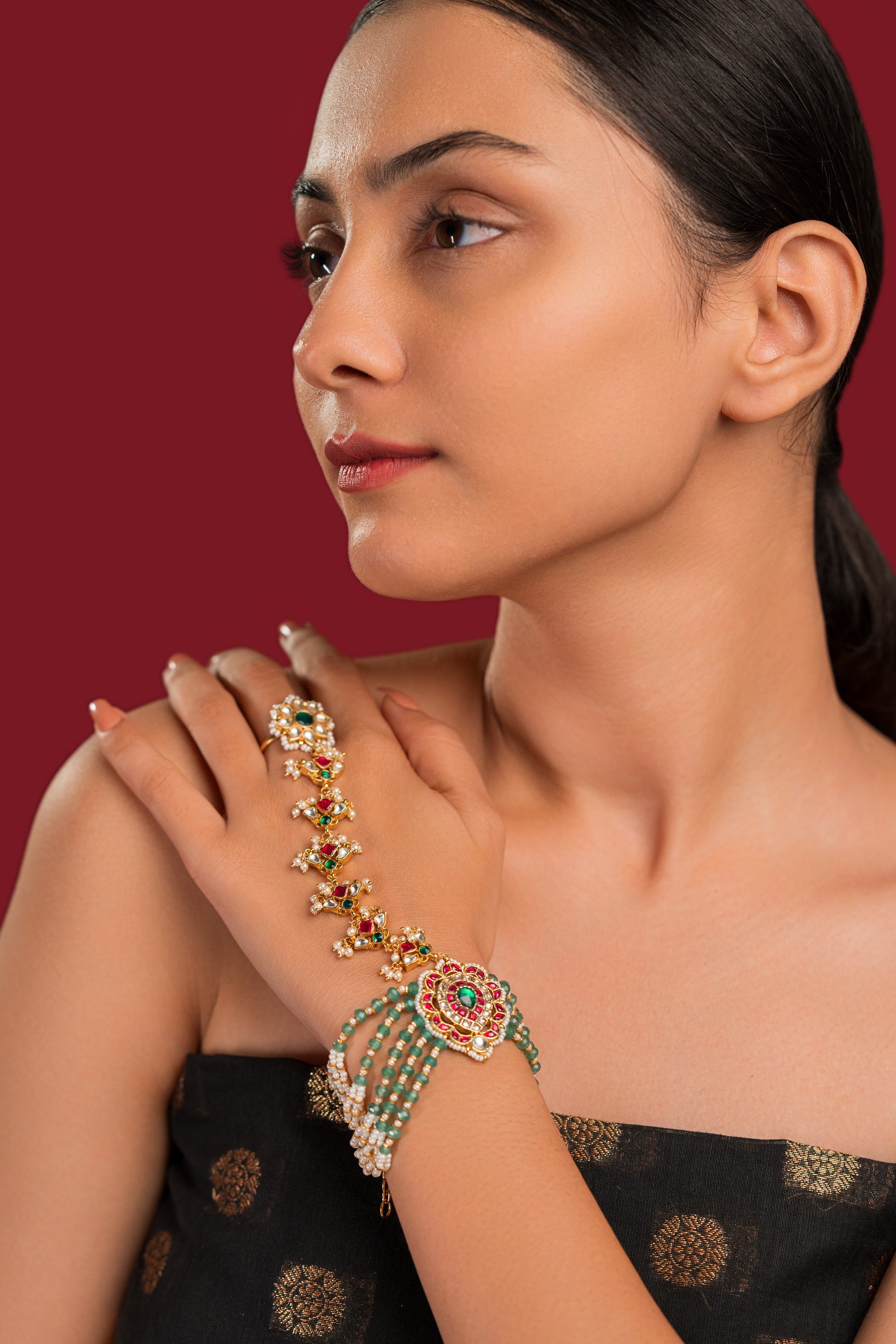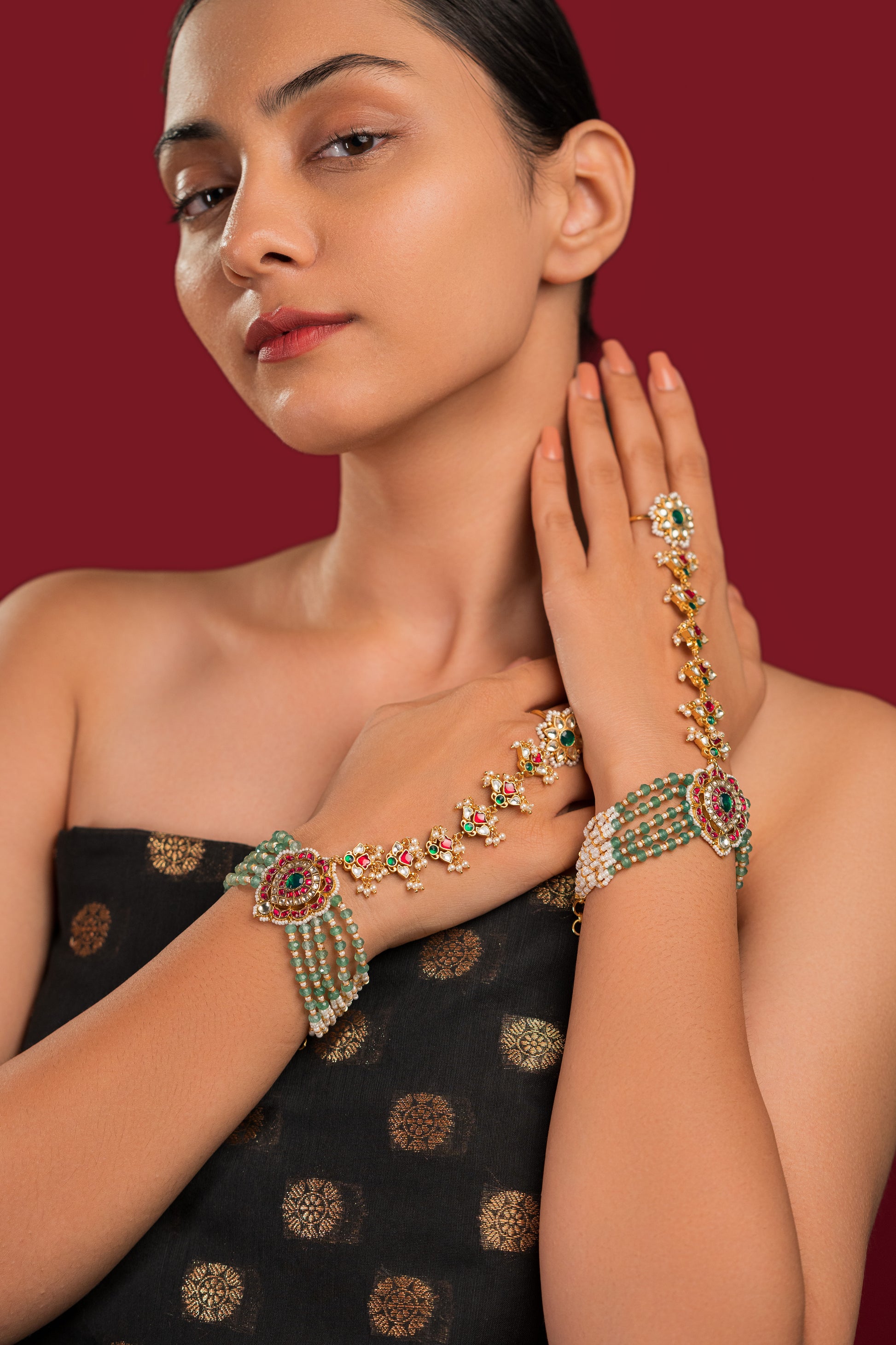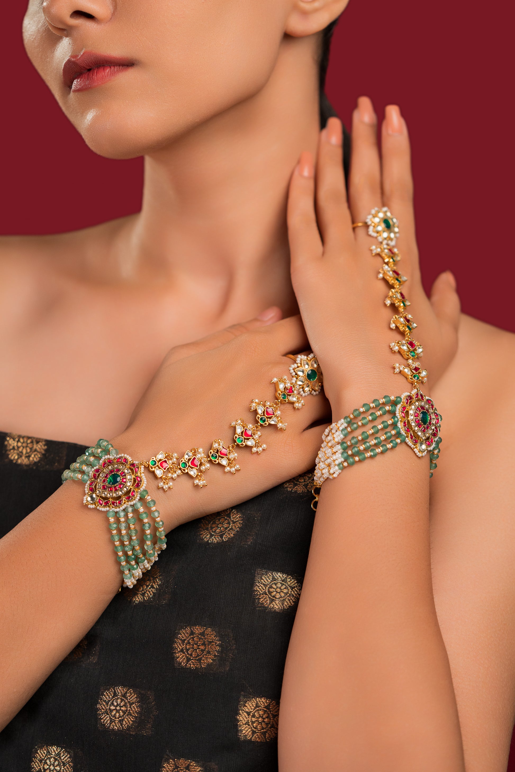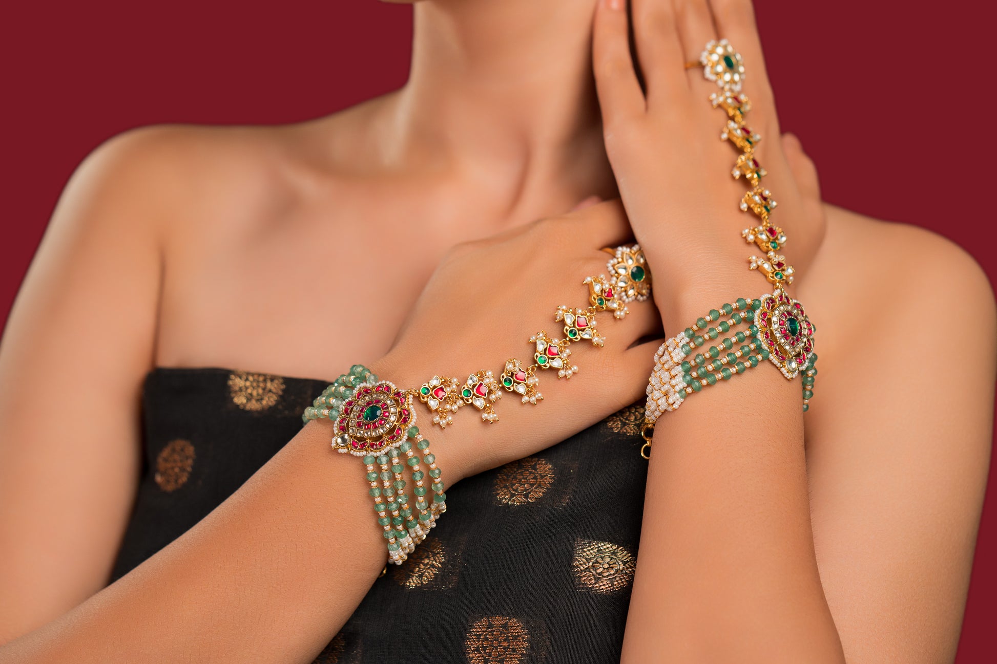 We use all premium materials to handcraft every product exclusively for you. All products are gold or silver plated or rhodium plated, made with high quality pearls, precious and semi precious beads, semi precious stones and high quality jadau kundan and moissanite.