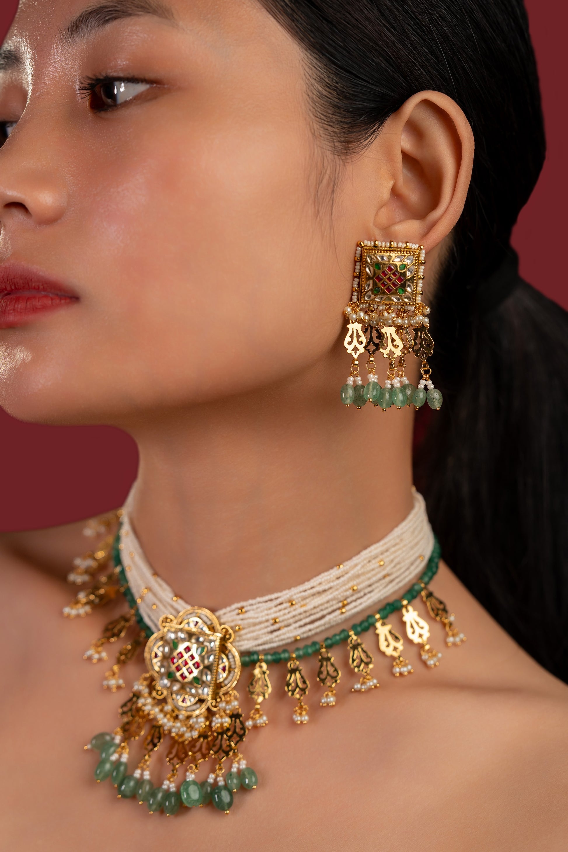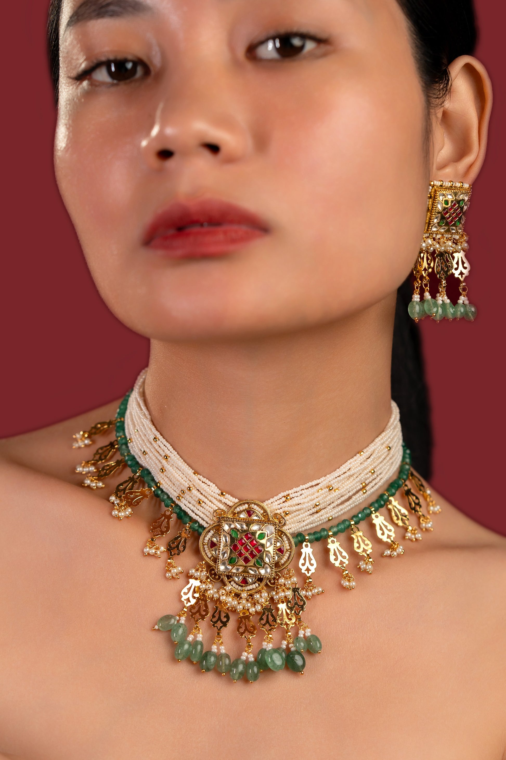 We use all premium materials to handcraft every product exclusively for you. All products are gold or silver plated or rhodium plated, made with high quality pearls, precious and semi precious beads, semi precious stones and high quality jadau kundan and moissanite.
