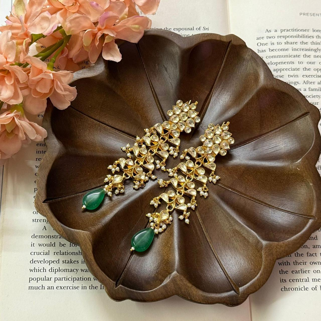 We use all premium materials to handcraft every product exclusively for you. All products are gold or silver plated or rhodium plated, made with high quality pearls, precious and semi precious beads, semi precious stones and high quality jadau kundan and moissanite.