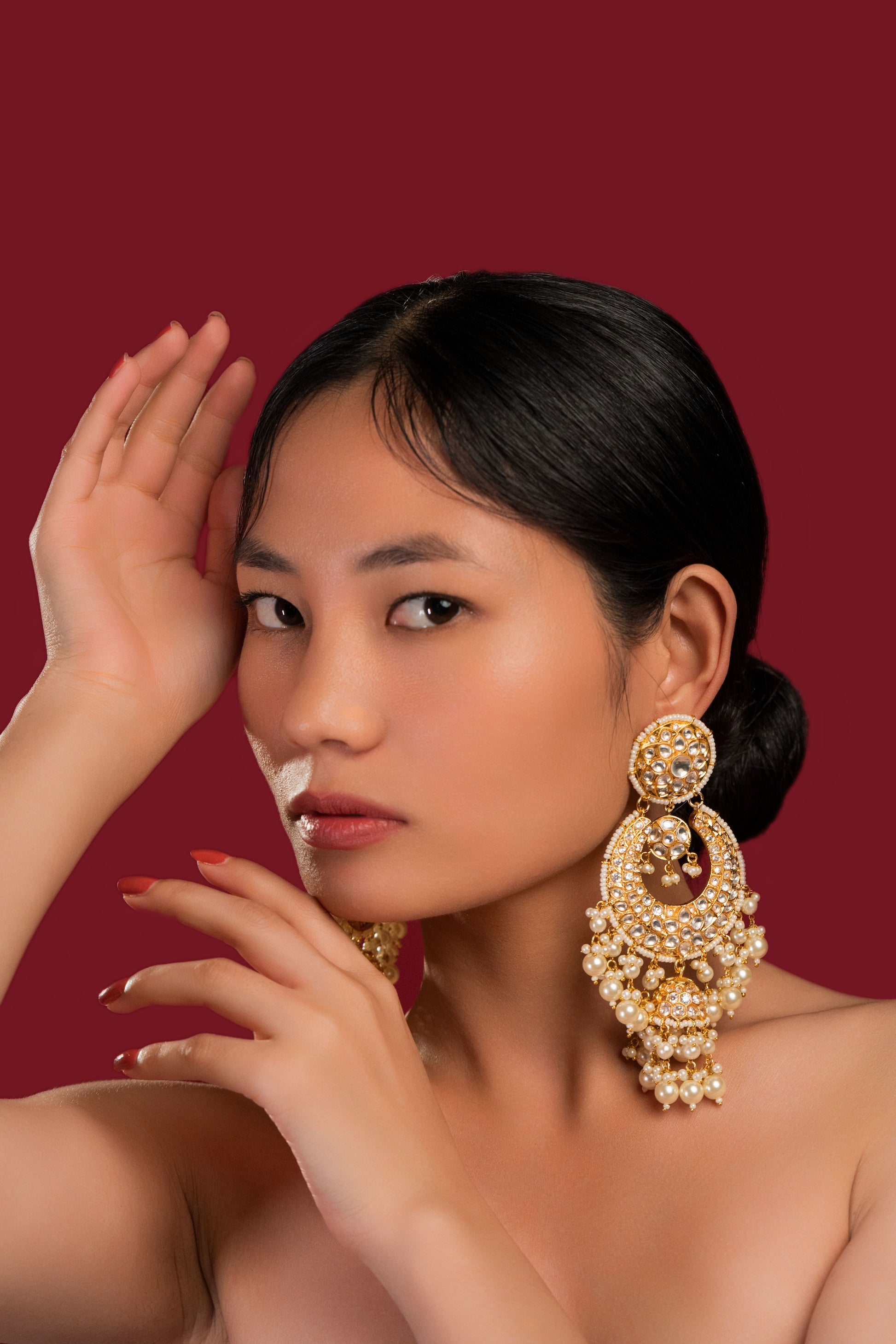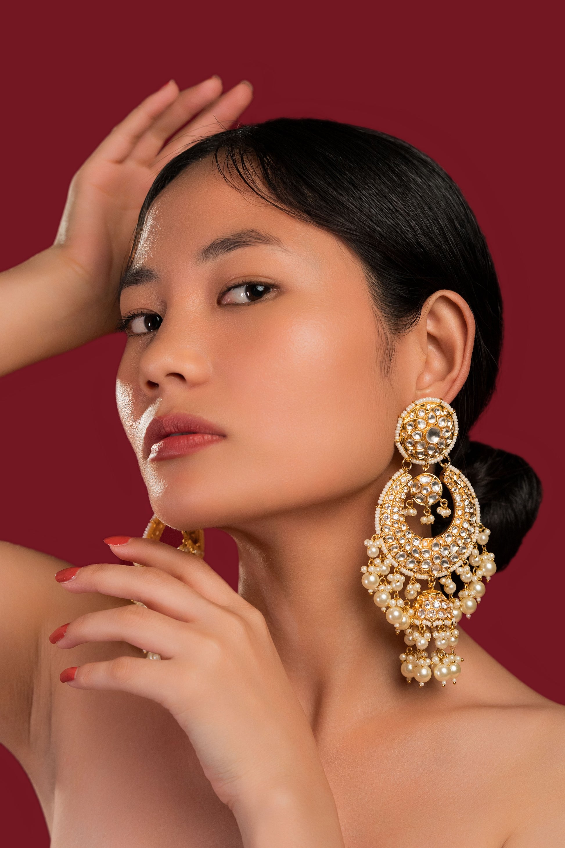 We use all premium materials to handcraft every product exclusively for you. All products are gold or silver plated or rhodium plated, made with high quality pearls, precious and semi precious beads, semi precious stones and high quality jadau kundan and moissanite.