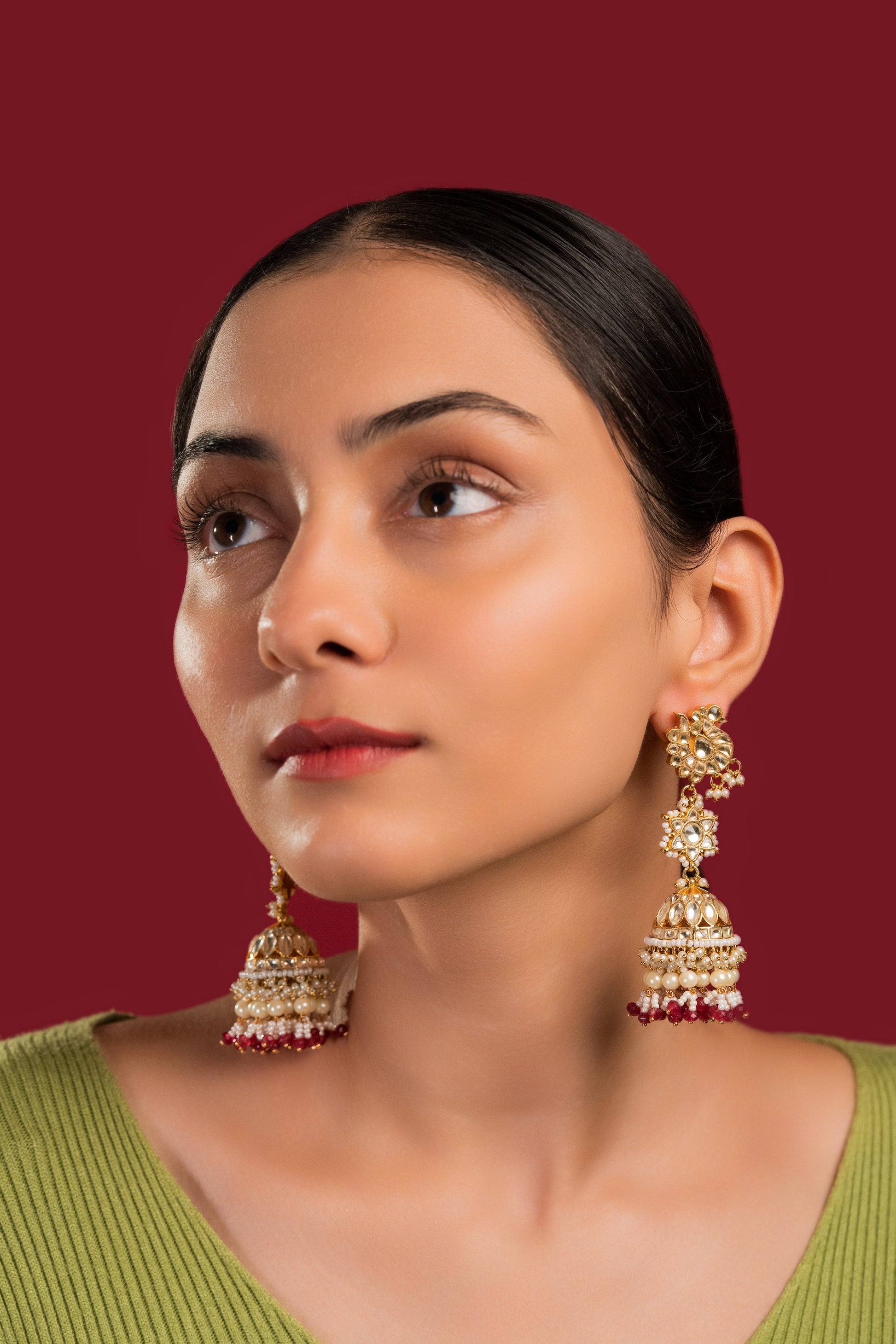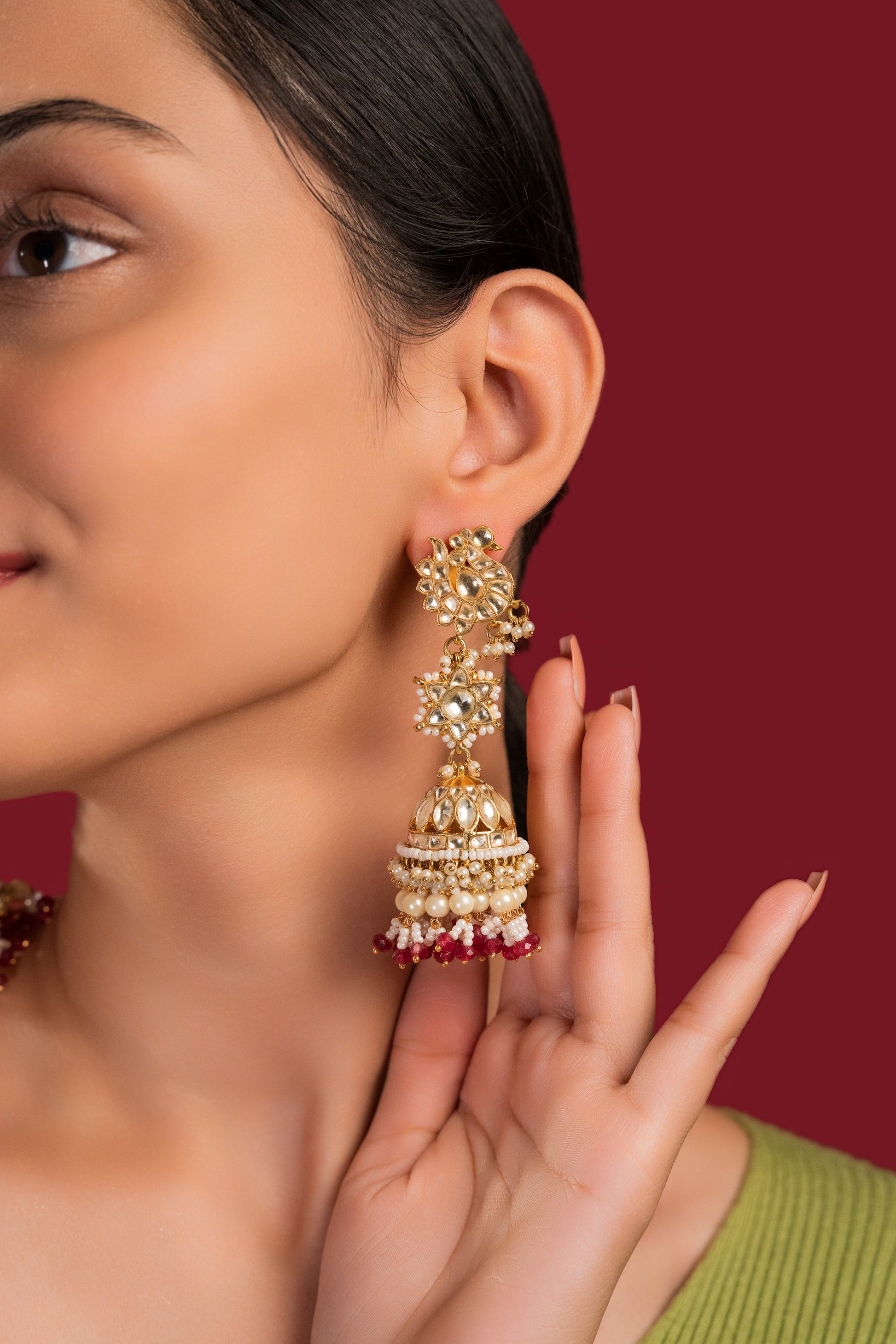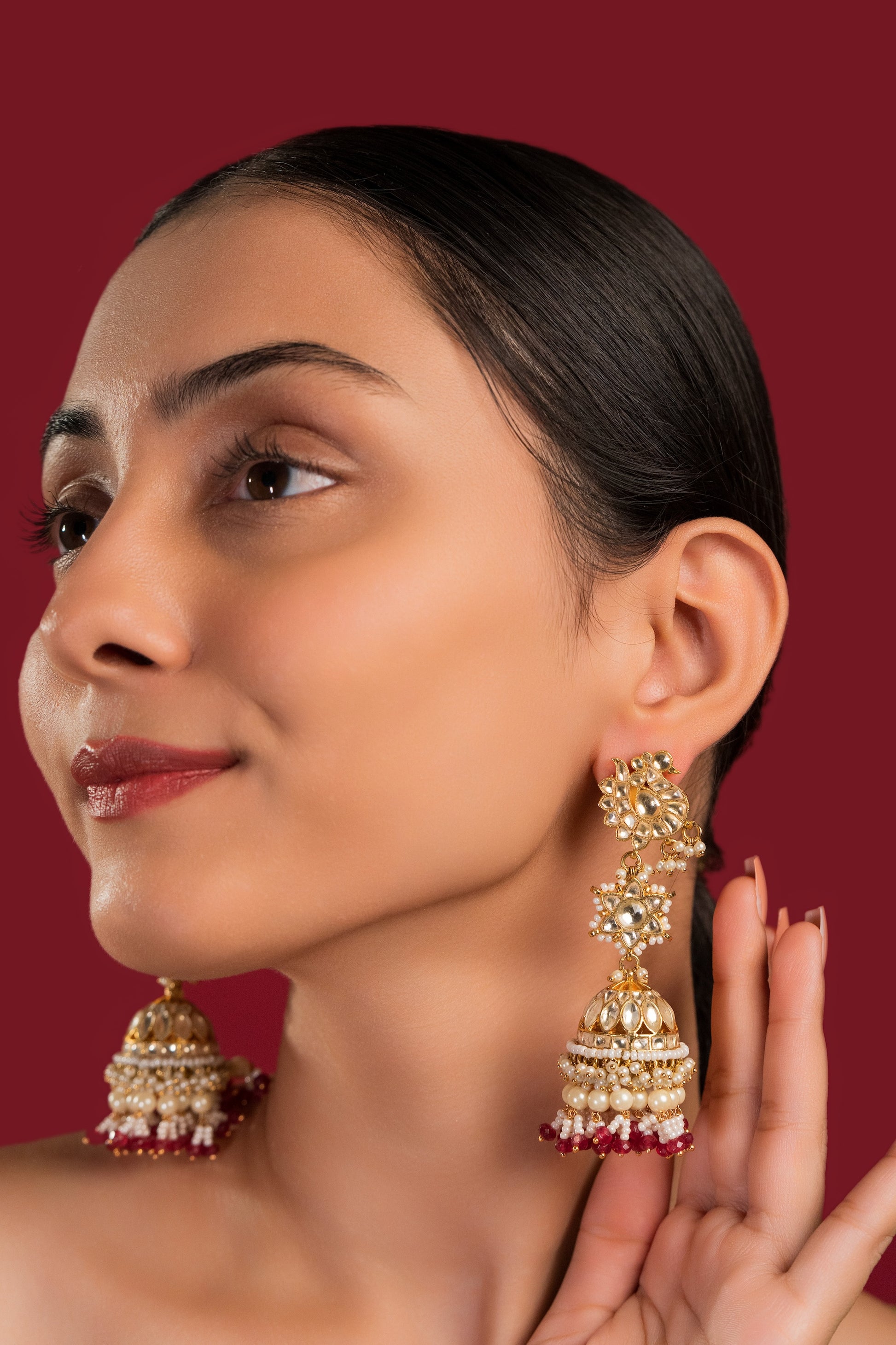 White Maroon Jadau Jumkha - VNE021